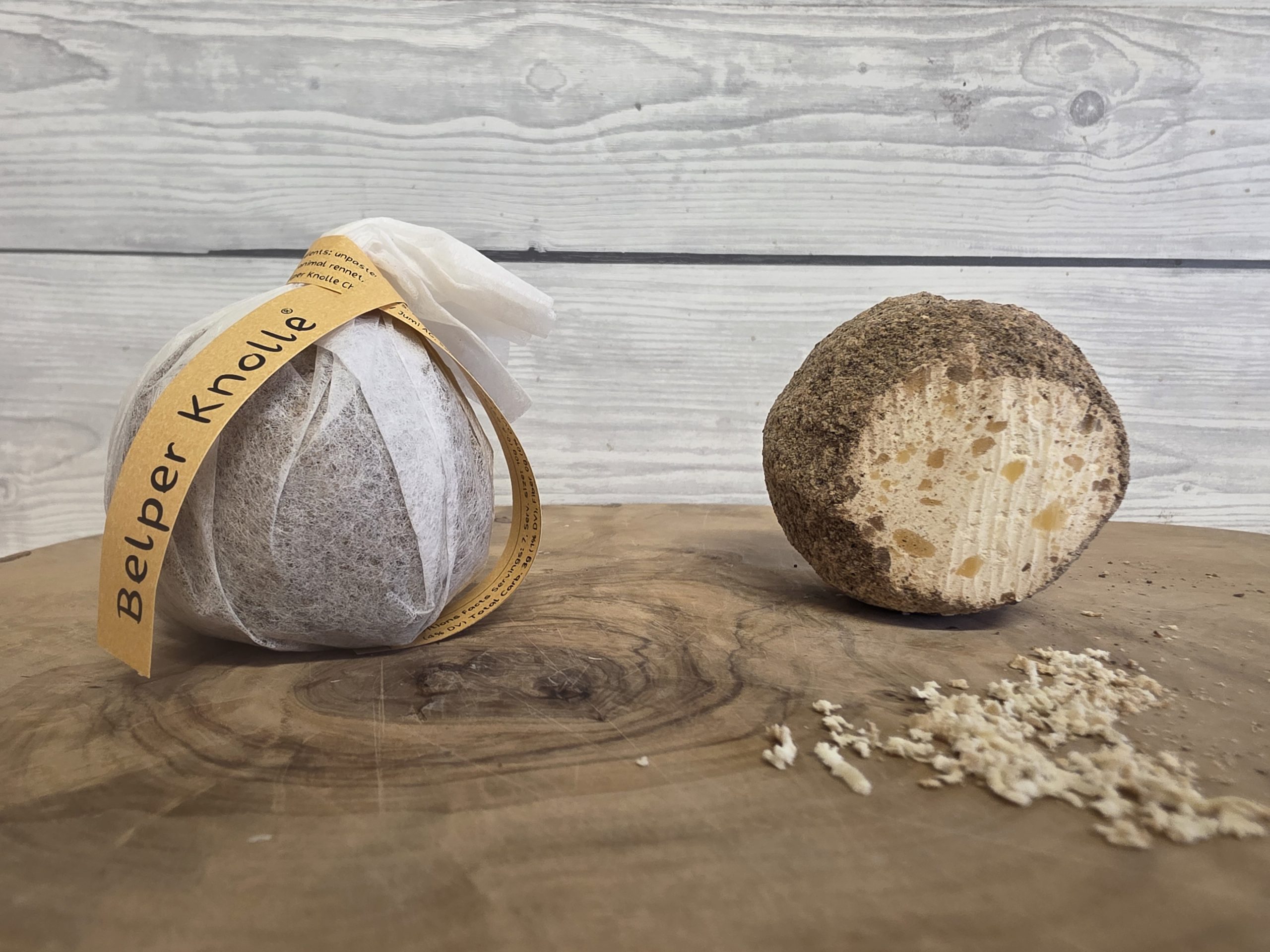 It’s a rock! It’s a truffle! No; it’s one of the most unique cheeses we’ve ever seen. First created in 1993, Belper Knolle is the invention of third-generation Herr Glauser, who runs a small dairy located in the small town of Belp near Berne in Switzerland. Raw milk is delivered directly to the dairy without being heated or cooled—instead, it’s made into cheese right away. Infused with garlic, himalayan salt and rolled in ground black pepper, this cheese makes a statement on the eyes and the palate. Shave it over risotto, pasta, fondue, salad, steak……… it’s not for the cheeseboard but it makes the best gift for anyone who enjoys cooking.
